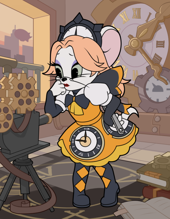 亮丽的橘粉色秀发用时钟发箍装饰着,这是复古与时髦的结合。泡泡袖、蝴蝶结,这样的时光连衣裙穿在图多盖洛·时光契约竟出乎意料的甜美。踩着菱格纹长筒靴,气质非凡的图多盖洛·时光契约有没有走进小伙伴们的心里呢?