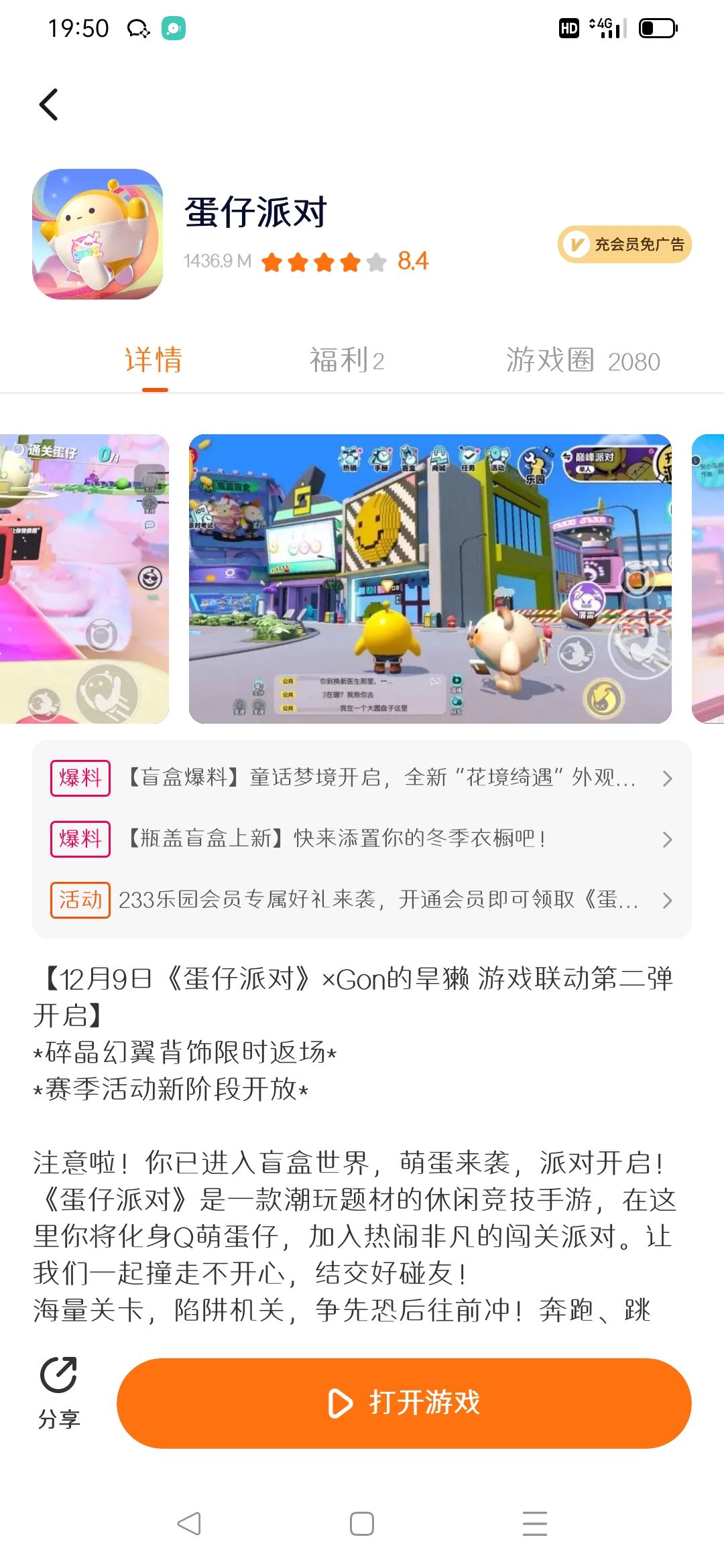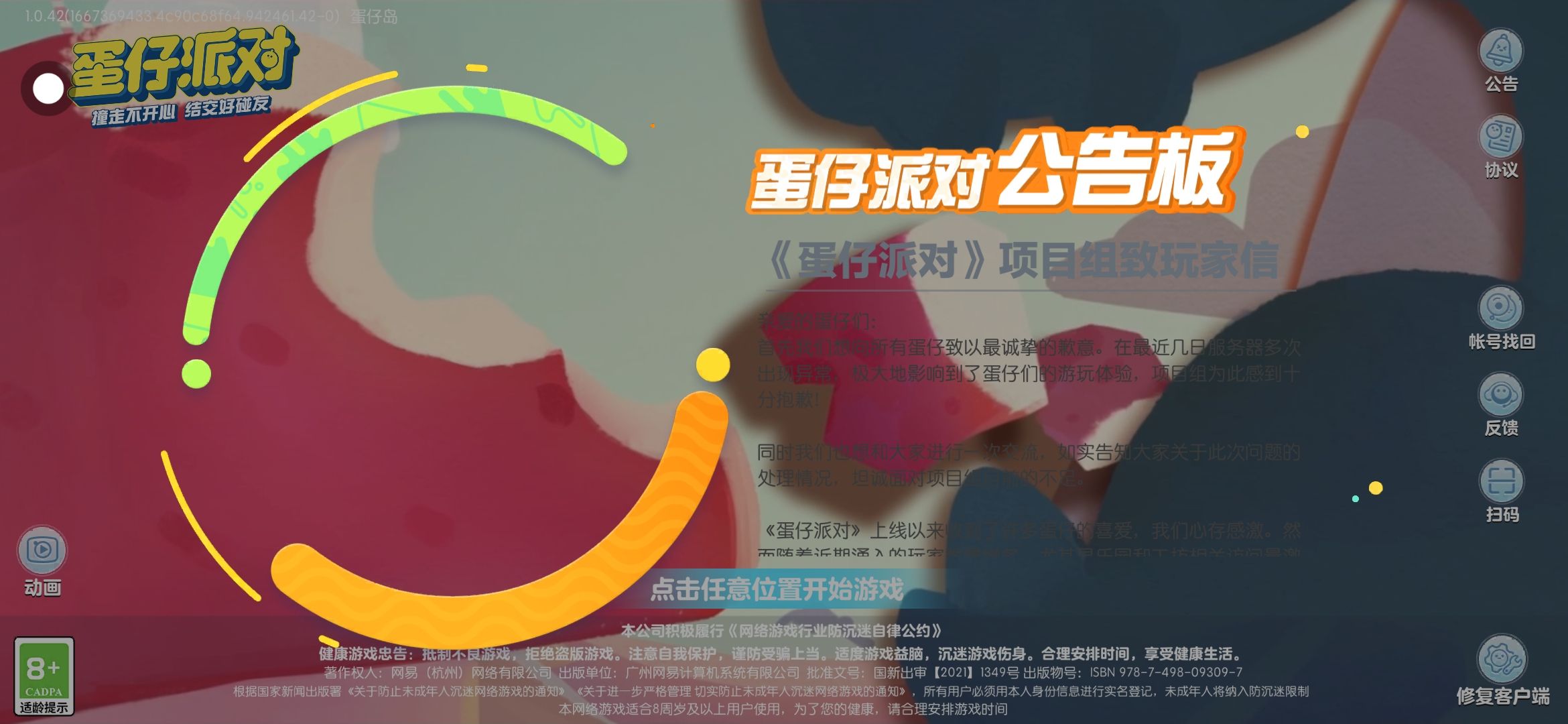 刚开始还好好的 ,可是为啥突然闪退呀 !公告版图旁边的蛋仔也没了 。