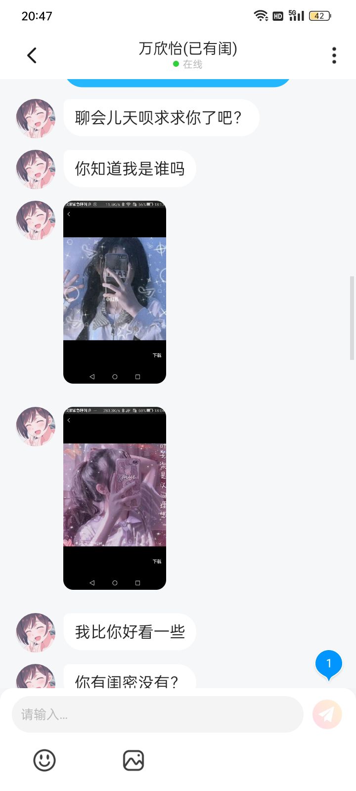 我真的是搞笑,无语,我求求他真的是别再给我发消息了吧,还说找那些小红书上的网图是他自己的图片。