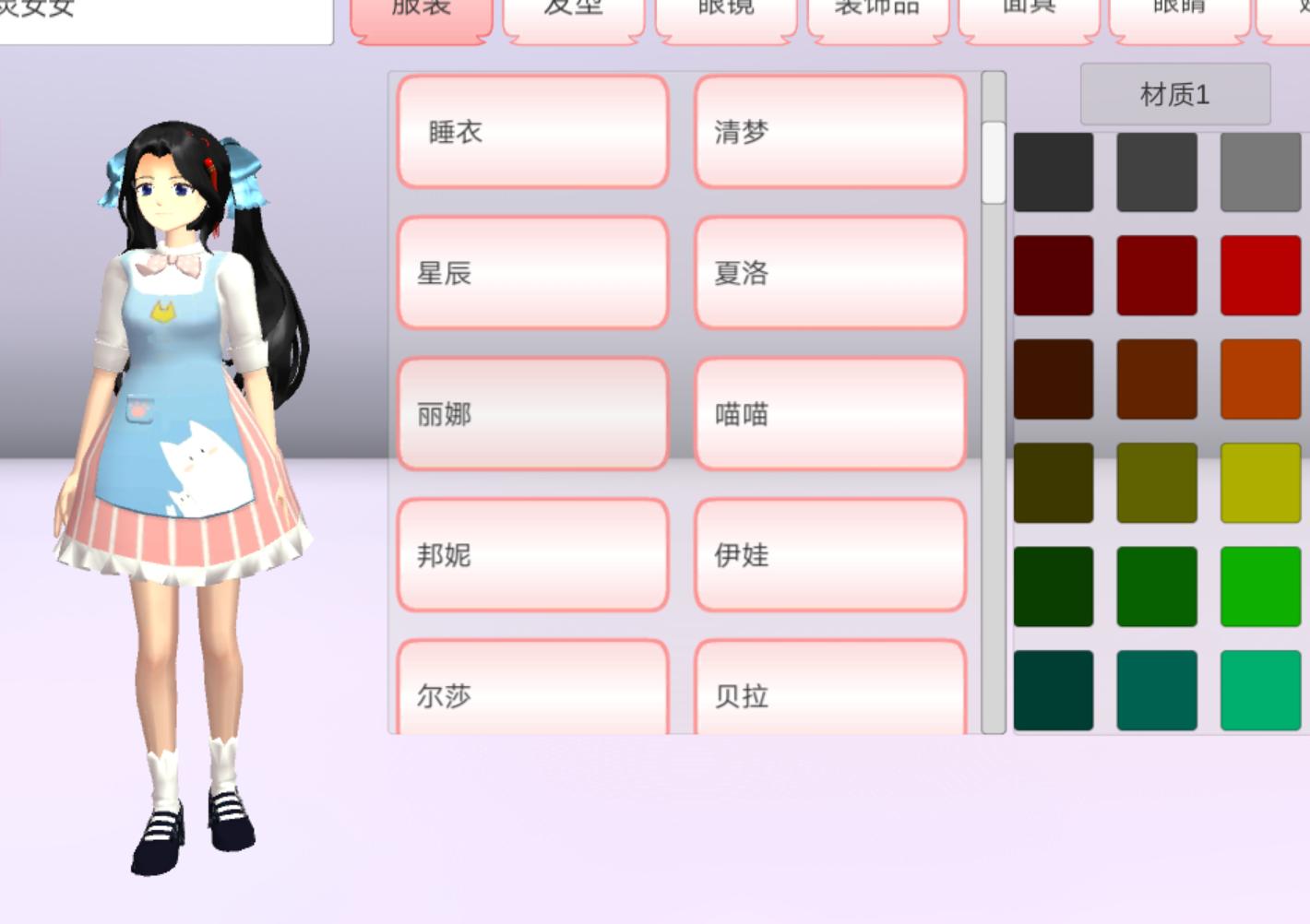女主衣服:清梦、星辰、夏洛、喵喵、丽娜、邦妮、伊娃等好看衣服。