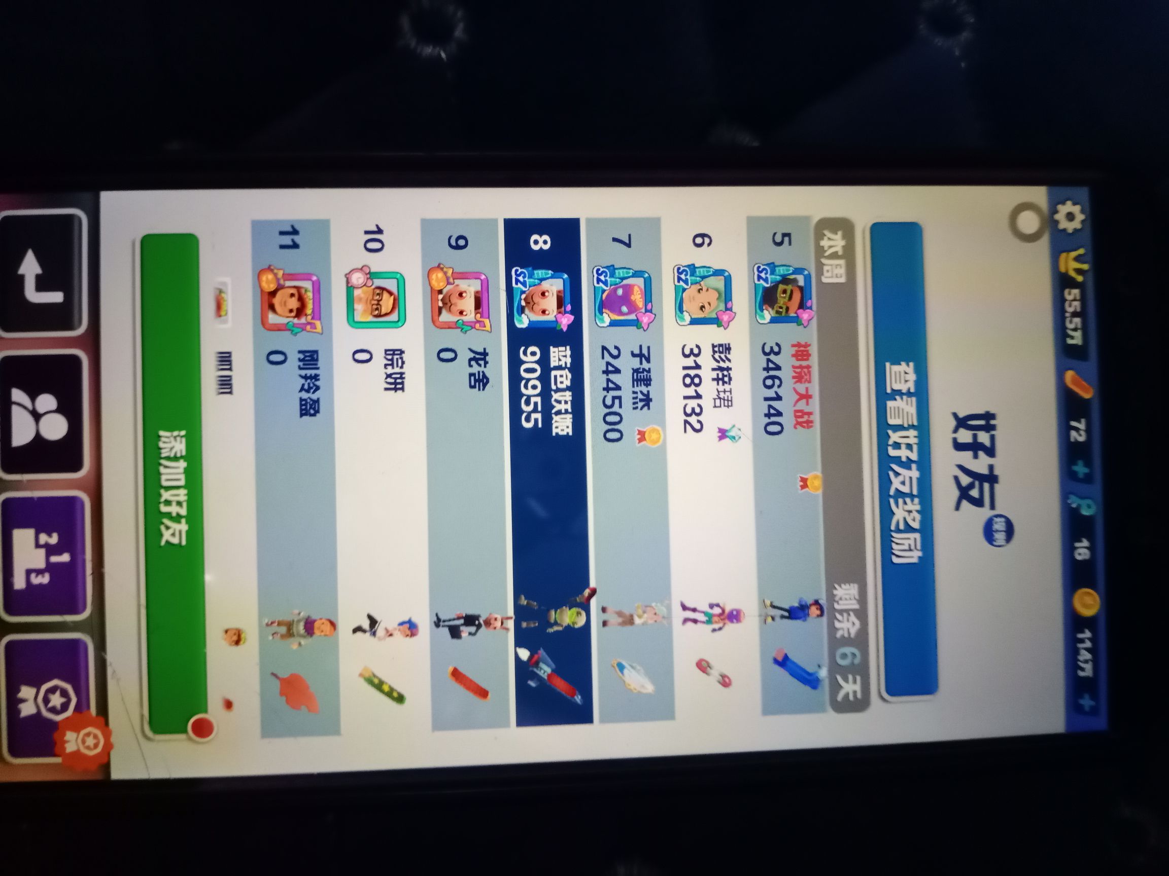 兄弟们,我还有一个小号,还可以再当一个师傅,谁都可以当我的徒弟。因为我那个手机不常玩,所以跑的分有点低。八个小时后可以进蓝色妖姬社团。