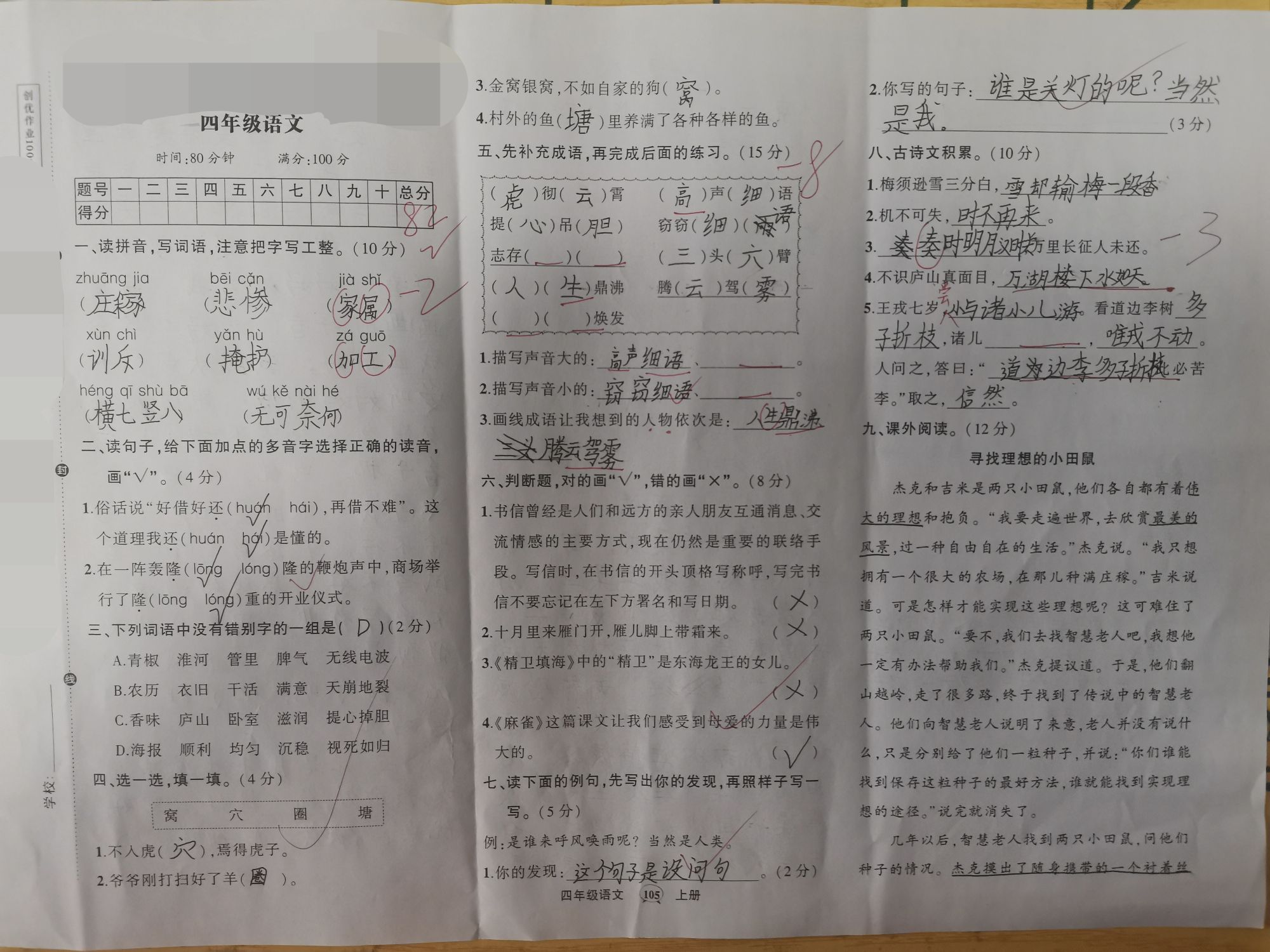 我觉得今天我要完了,因为上一次语文考试我才考了82分,我妈会不会打我?