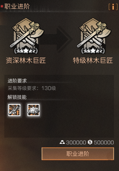 职业进阶为特级林木巨匠后