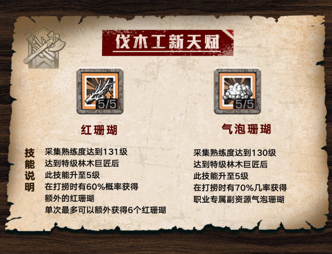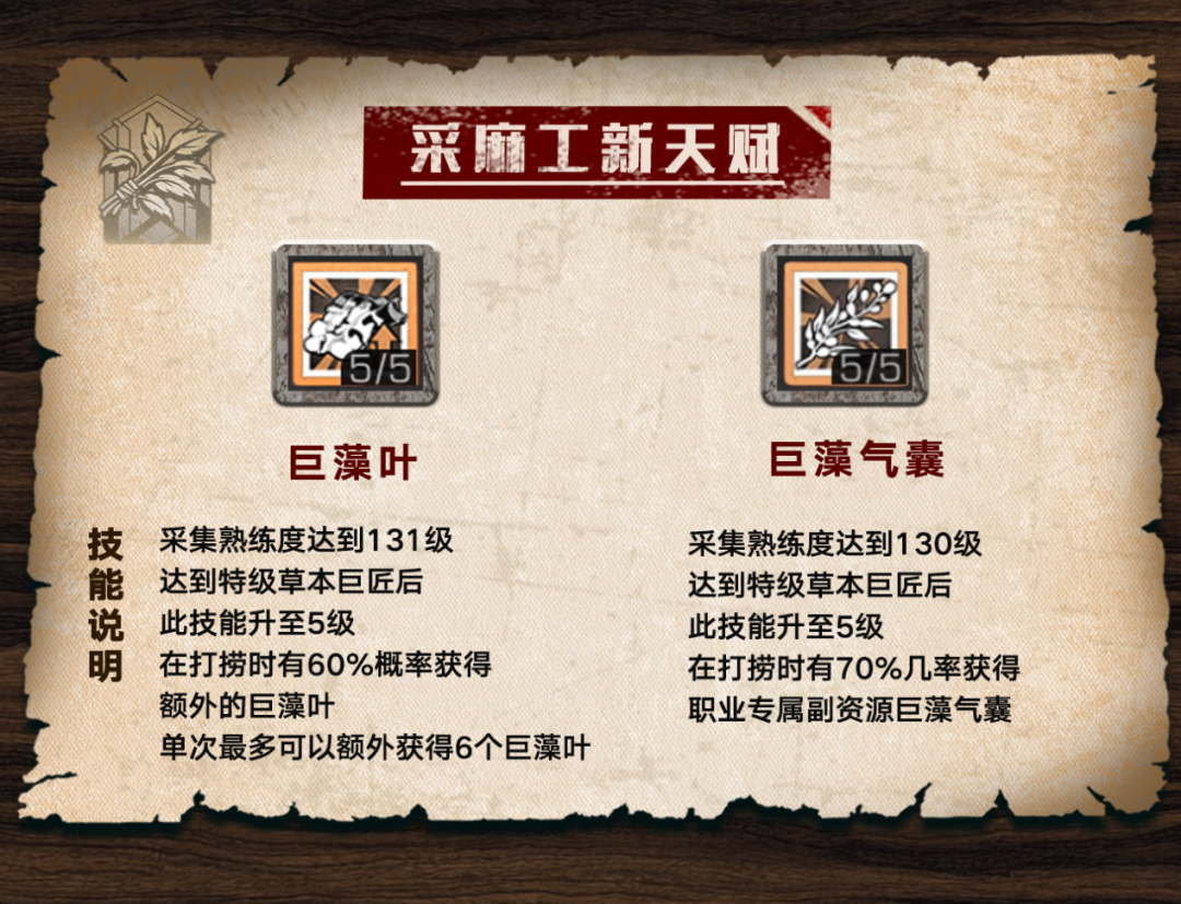 四大采集职业新等级的天赋