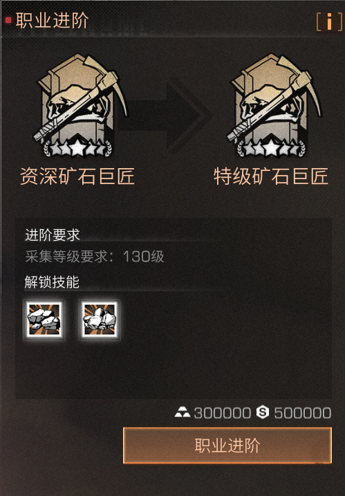 职业进阶为特级矿石巨匠后