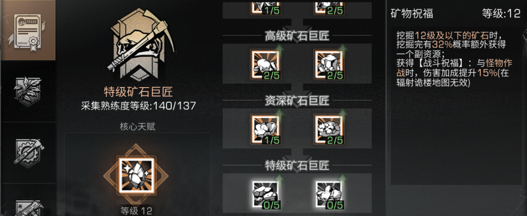 可升级核心天赋-矿物祝福为12级