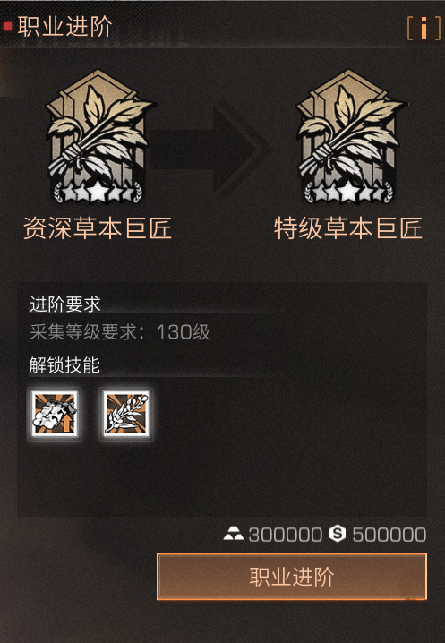 职业进阶为特级草本巨匠后