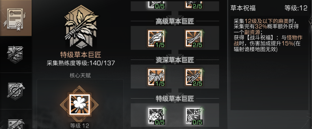 可升级核心天赋-草本祝福为12级