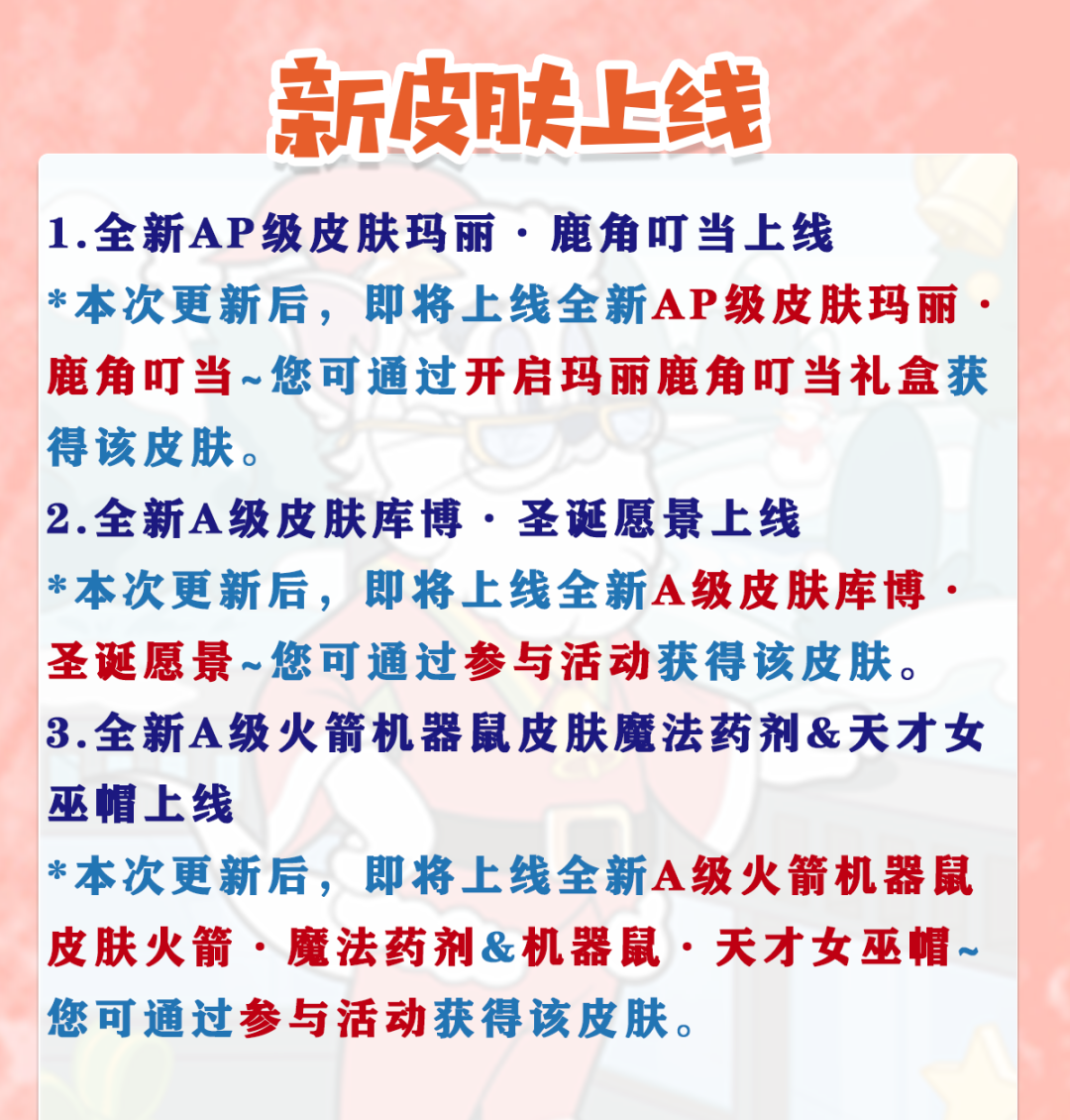 *本次更新后,商城内欢乐圣诞系列皮肤限时6折,喜欢欢乐圣诞系列皮肤的小伙伴千万不要错过哟