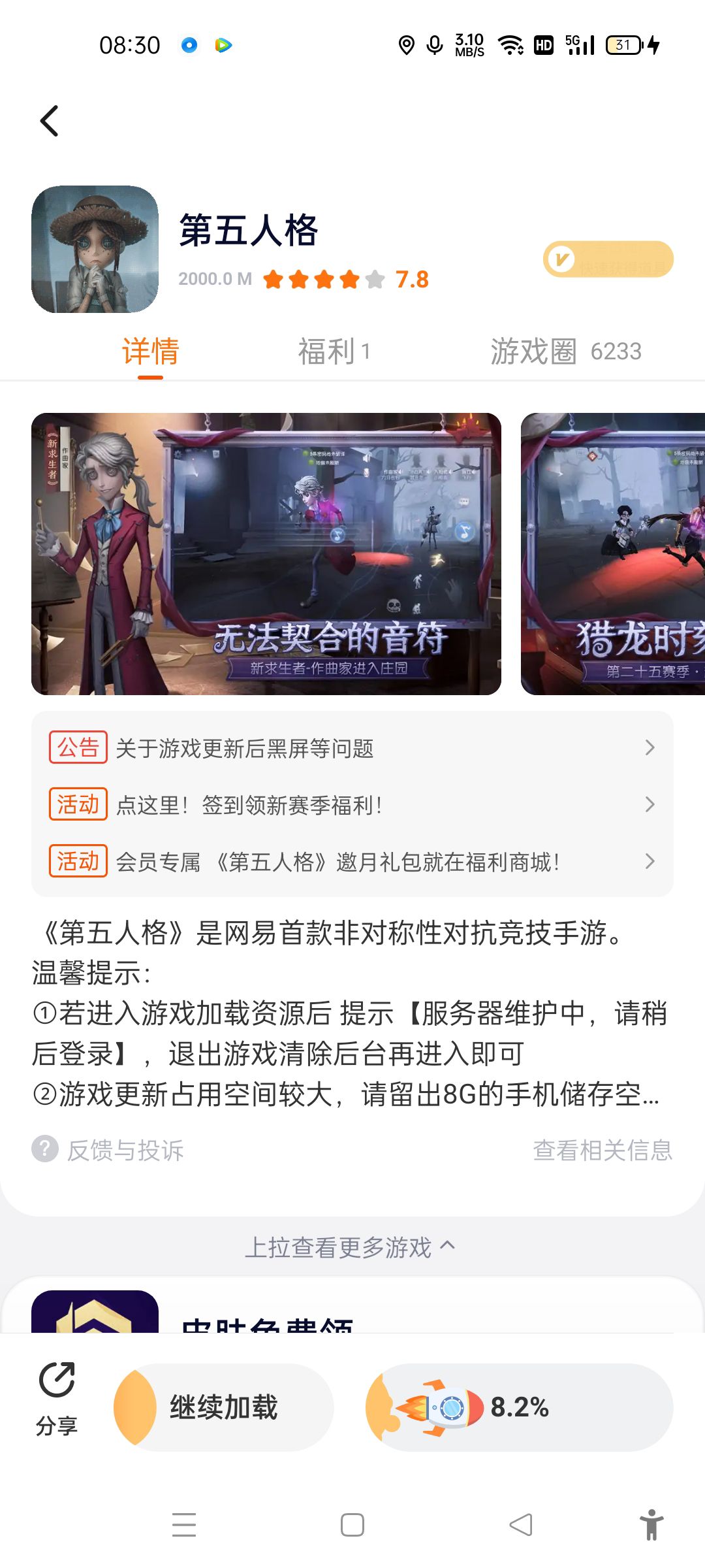 更新完了又这样,真羡慕你们黑屏的,我根本进不去😅