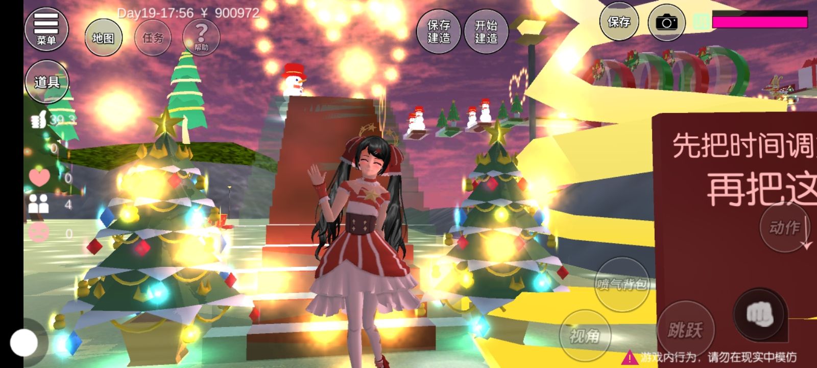 小贴士: 开始玩之前先把时间调为傍晚5点(可调可不调) 再开启圣诞屋的霓虹灯,你会回来感谢我的哦♡