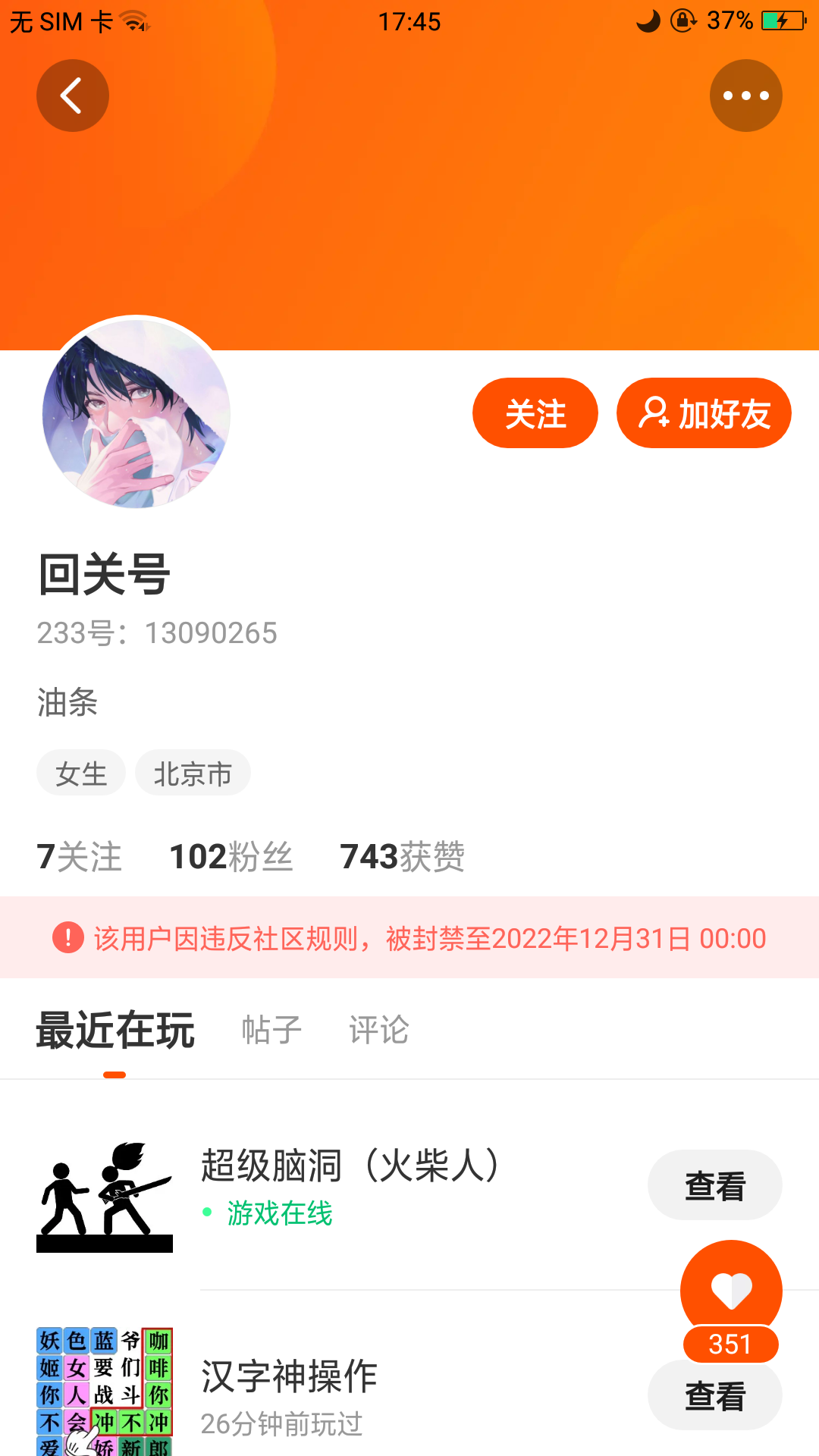 这人被封禁了怎么还能发信息啊?
