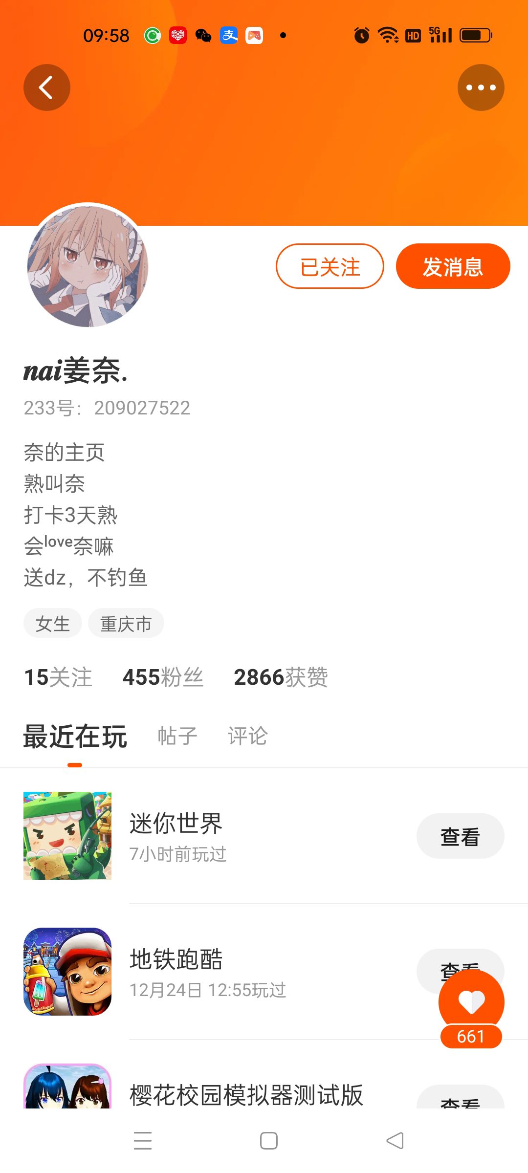 关注她到500,大家都上我这里玩要不要挑战