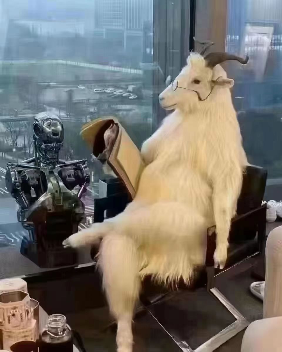 哎呀,这个羊漂亮,翘着二郎腿。