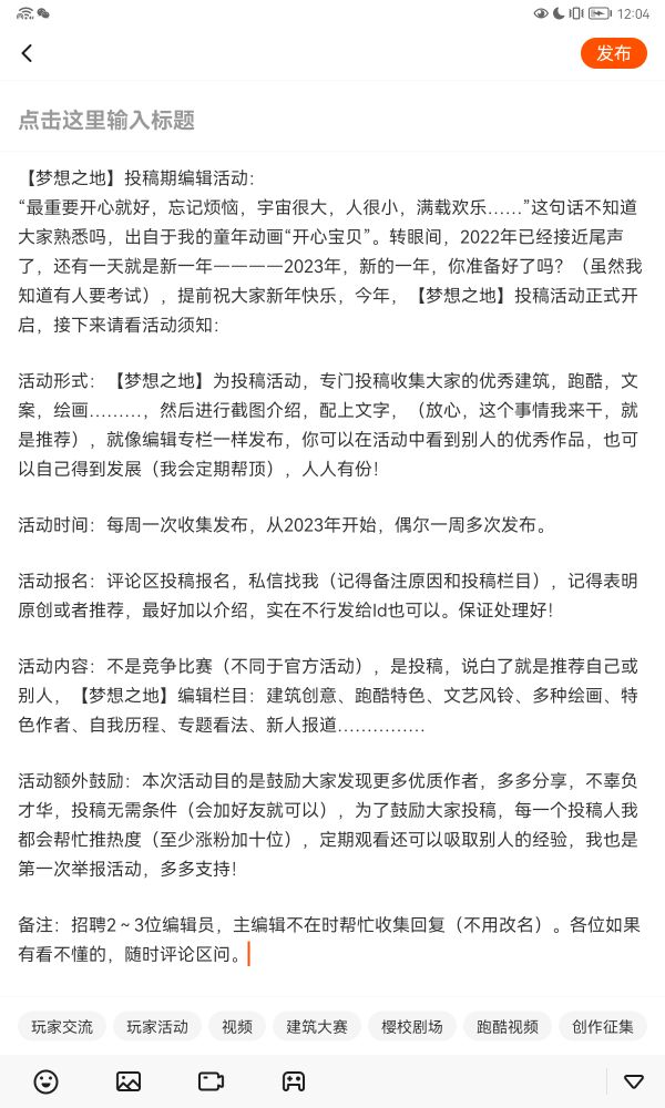 【梦想之地】投稿编辑活动: