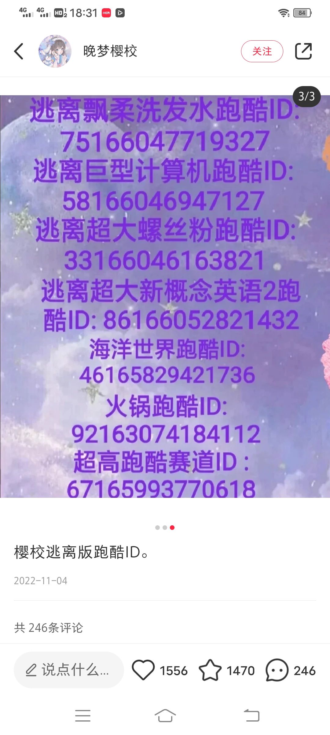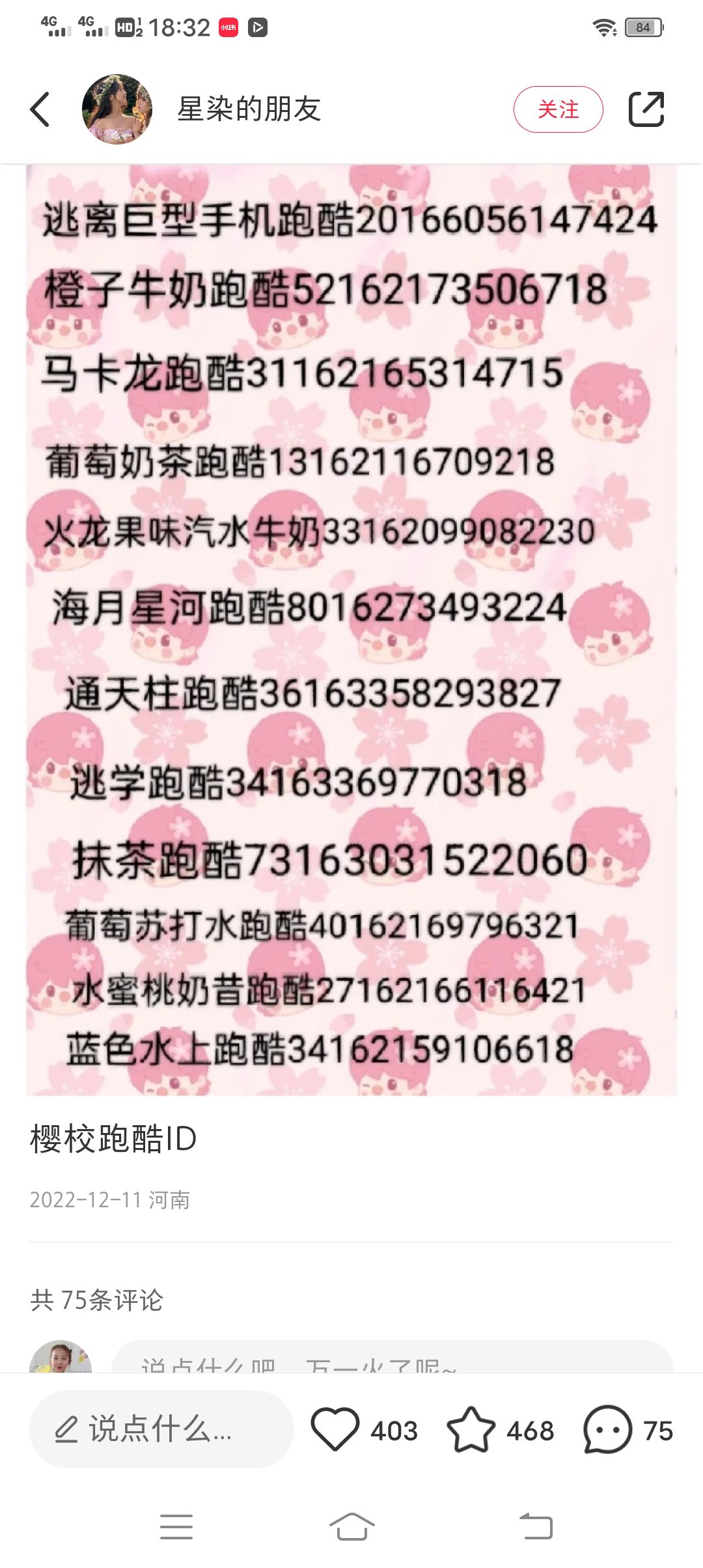 跑酷ID温馨提示有些是其他版本还有一些是梦幻高校物语的