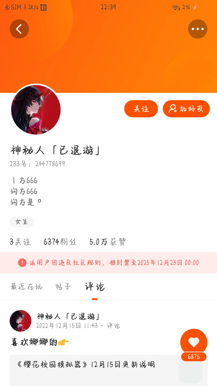 但是他这个233不是被封了嘛 怎么改的个性签名🤔 改了好几次了😶