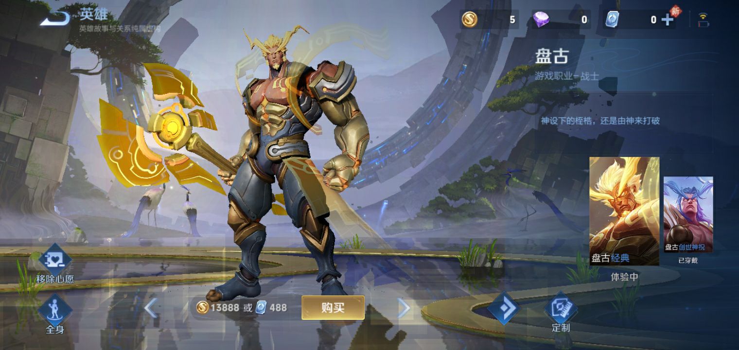 谁能给我买个盘古,看金币,皮肤我也有了就差个英雄,求求你们了。