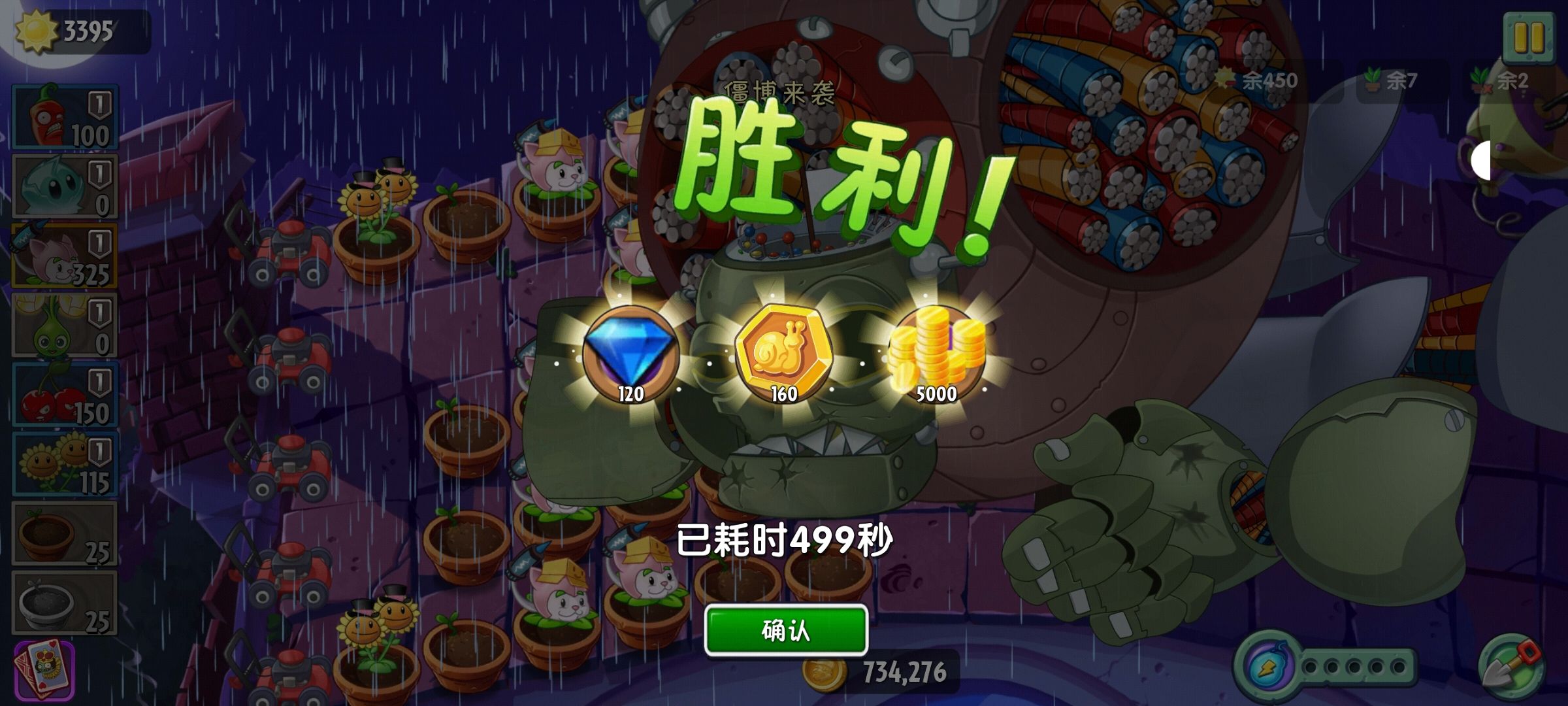这里失误了 冰冻生菜没种上 不然后期可以打的更舒服 还好后期只放了一个未来巨人还被二连导弹打死了