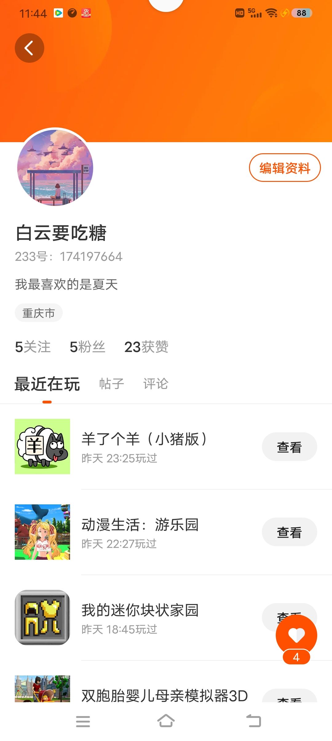 我有五个粉丝这23个五个关注点赞