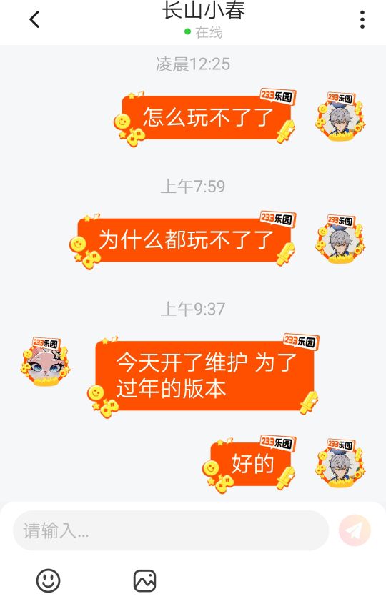 《233乐园》于2023年1月11日19时对服各器进行维护,期间少部分游戏可能无法正常登录,大家稍安勿躁,此次维护于2023年1月12日19时结束,如有疑问请咨询客服。