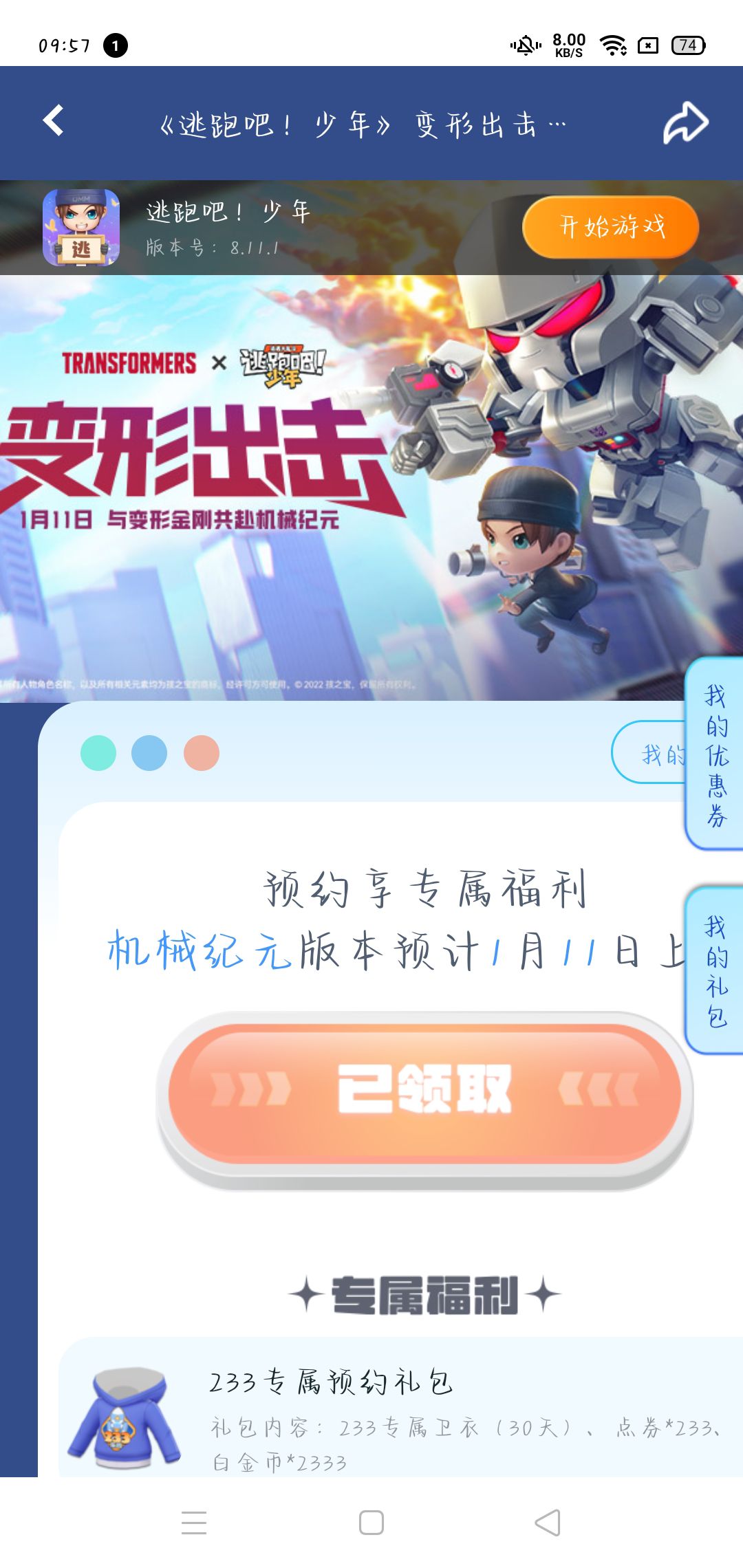 我领到了233特制衣服