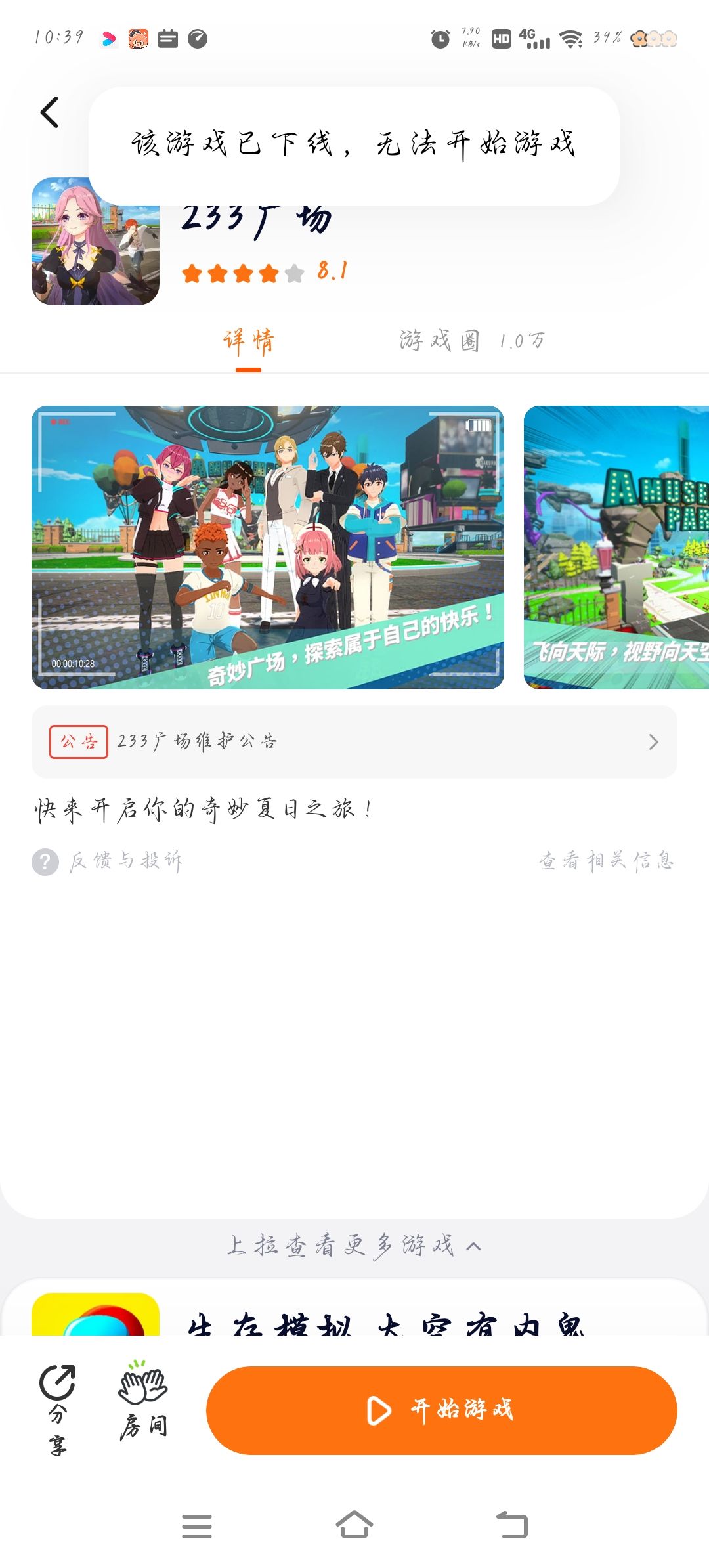 你们可以玩吗?有没有提示已下线?