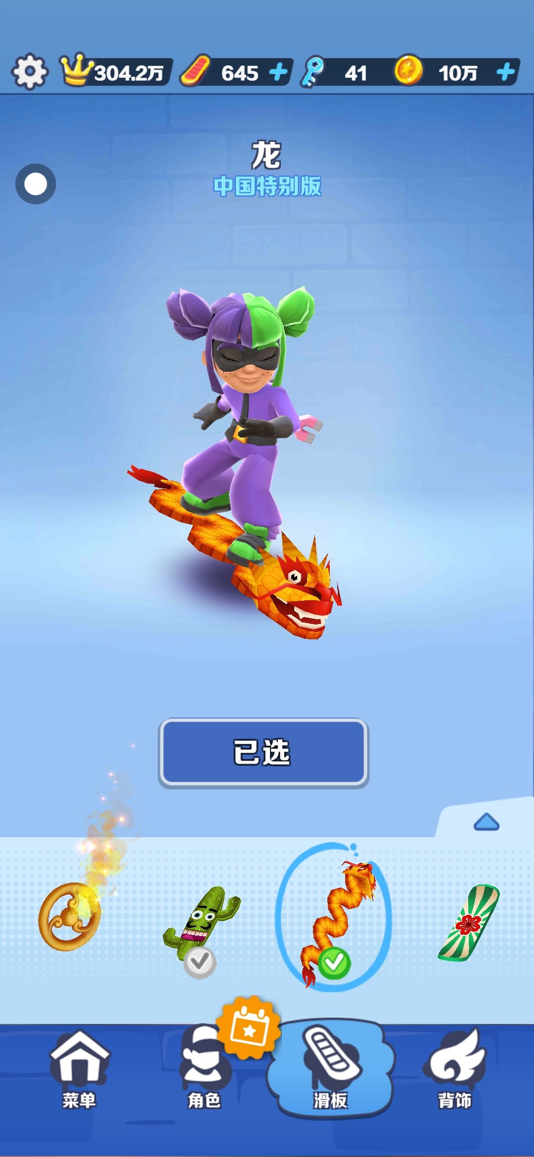 我这里刚显示就买了一级是龙(金币的) 然后重进就没了 但是还能用
