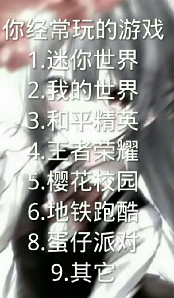 你们经常玩什么游戏,包括逃跑吧 少年。 😊