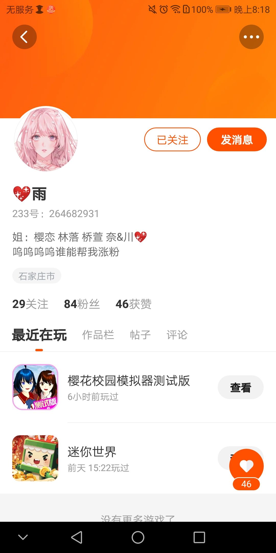 帮我妹妹涨点粉呗!!!