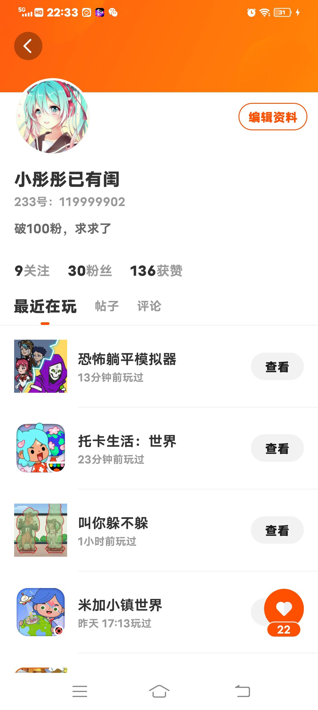 我想破100粉,求求了