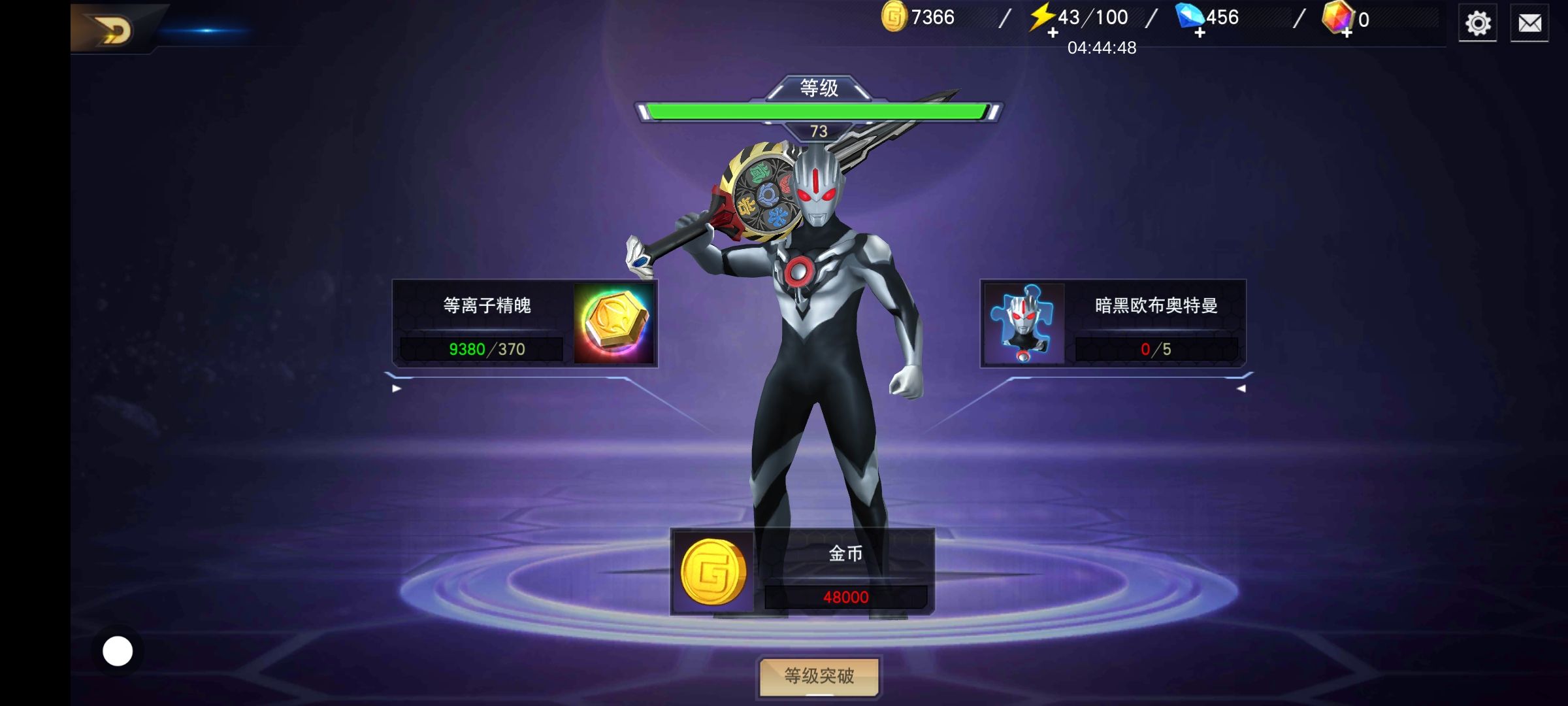 哦,终于到了50万战力,74级黑欧。