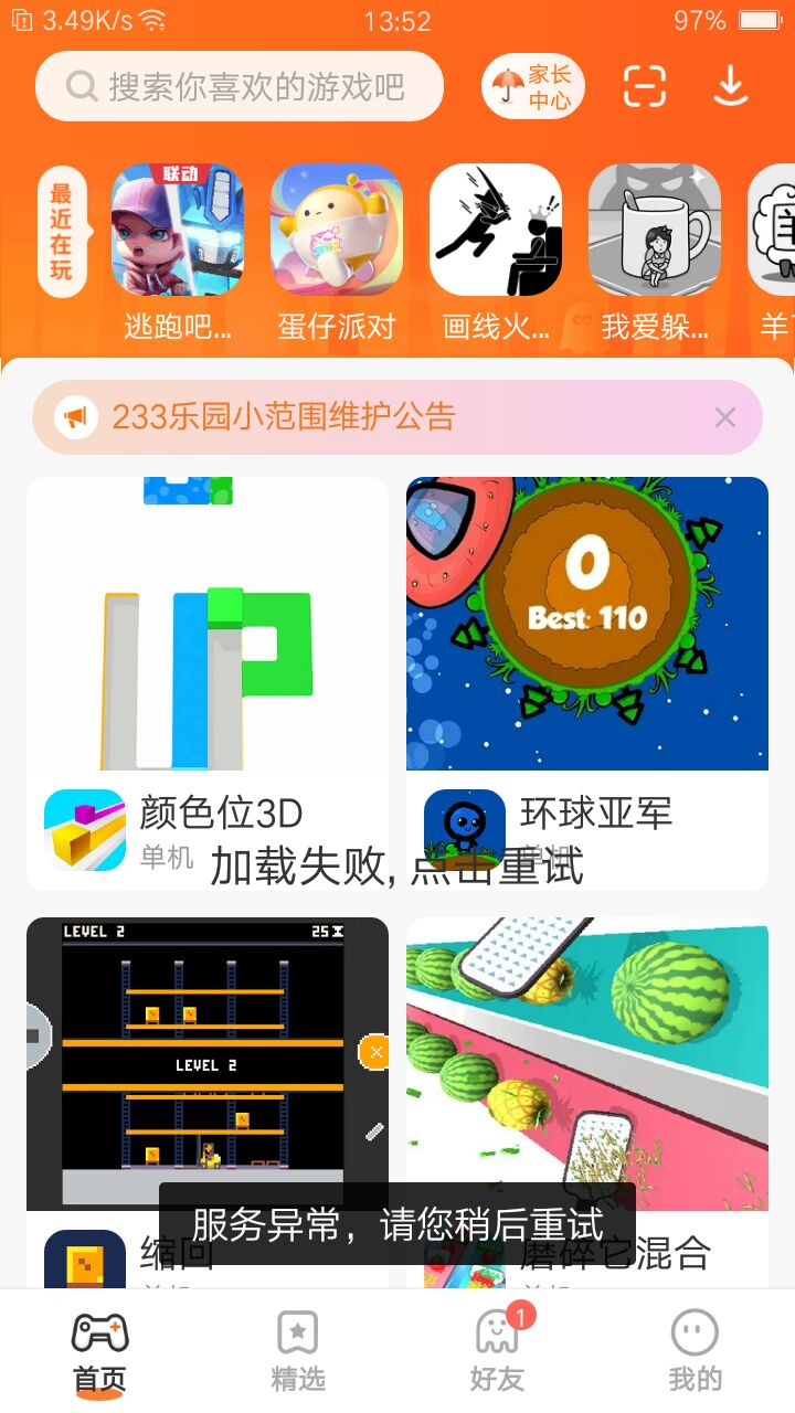这是小范围维修,已经发公告了,向下滑动刷新一下