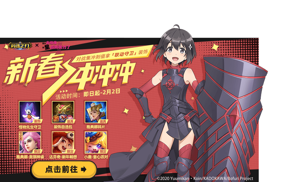 开启新春冲冲冲活动,通过参与对战累计个人及全服冲刺值,累计到一定数量可以解锁相应奖励,最高有机会获得雅典娜-奥钢神谕、泰坦巨人-举重冠军、小鹿-童心派对、孙尚香-舞动无双、全新怪物先生守卫等奖励!