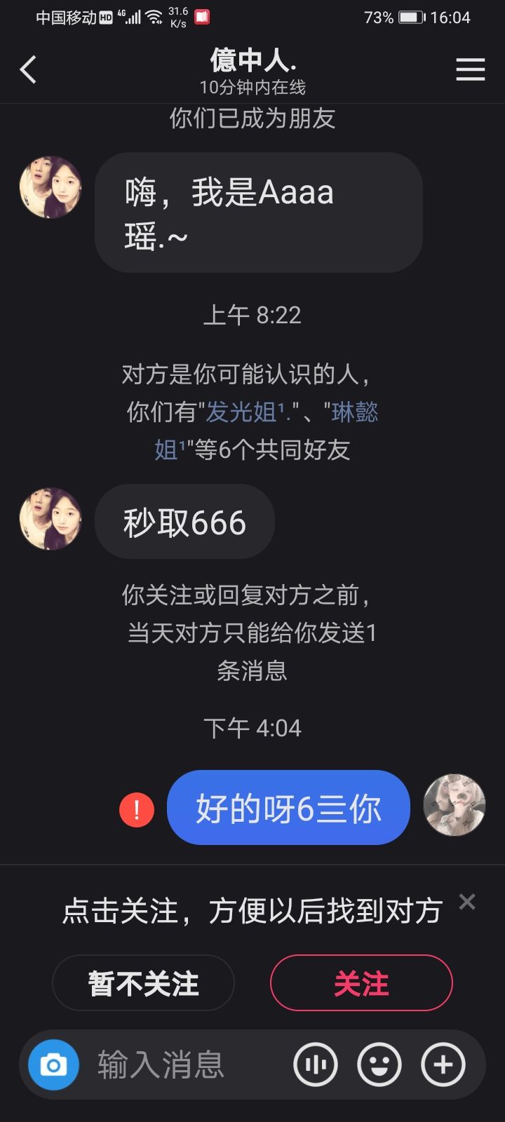 我秒取了吗???我们12.25日成的朋友唉,今天才取的她,而且我是软取唉,主页也写了我取关不吱声