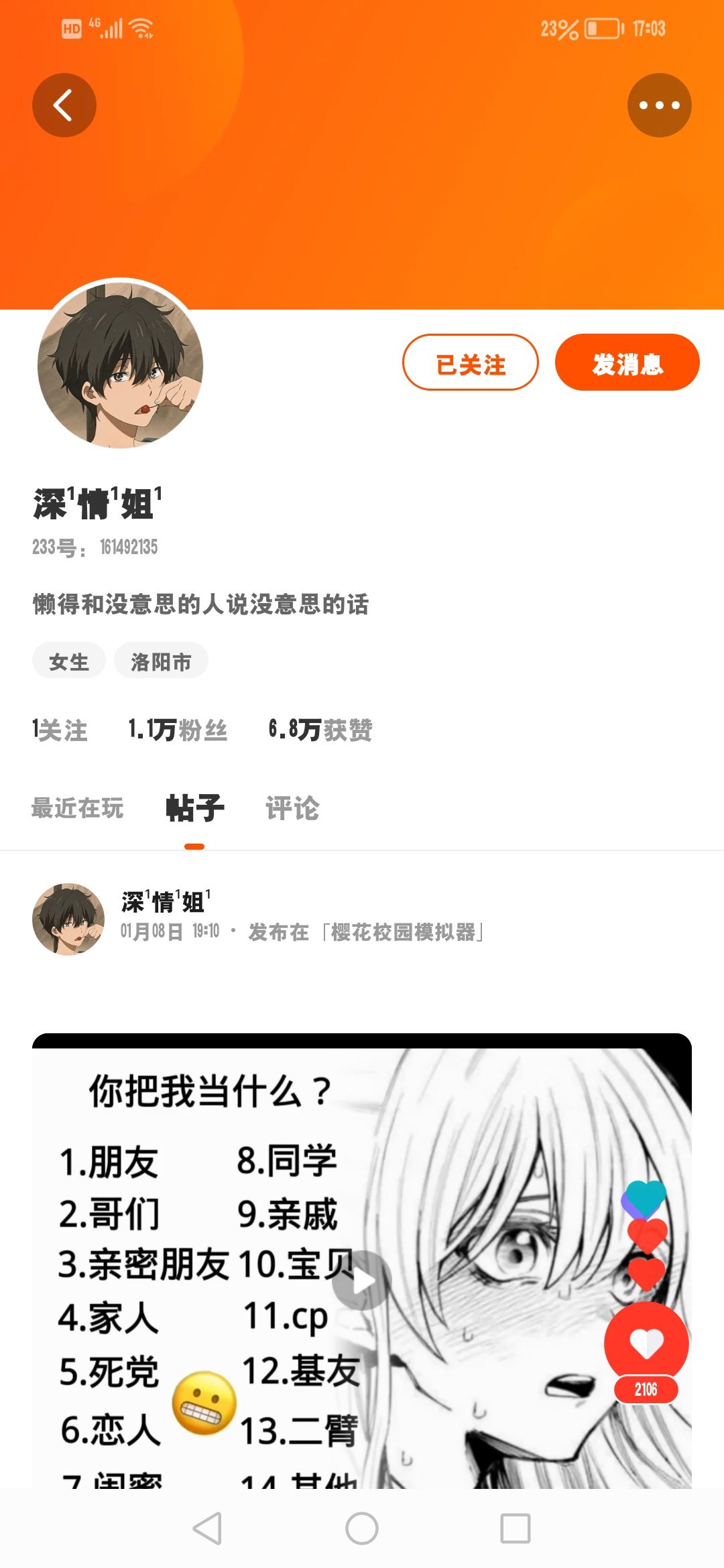 不要那个发展1年半的mnh了😿,说实话有点舍不得,但是不要了,里面还有500多币🐽