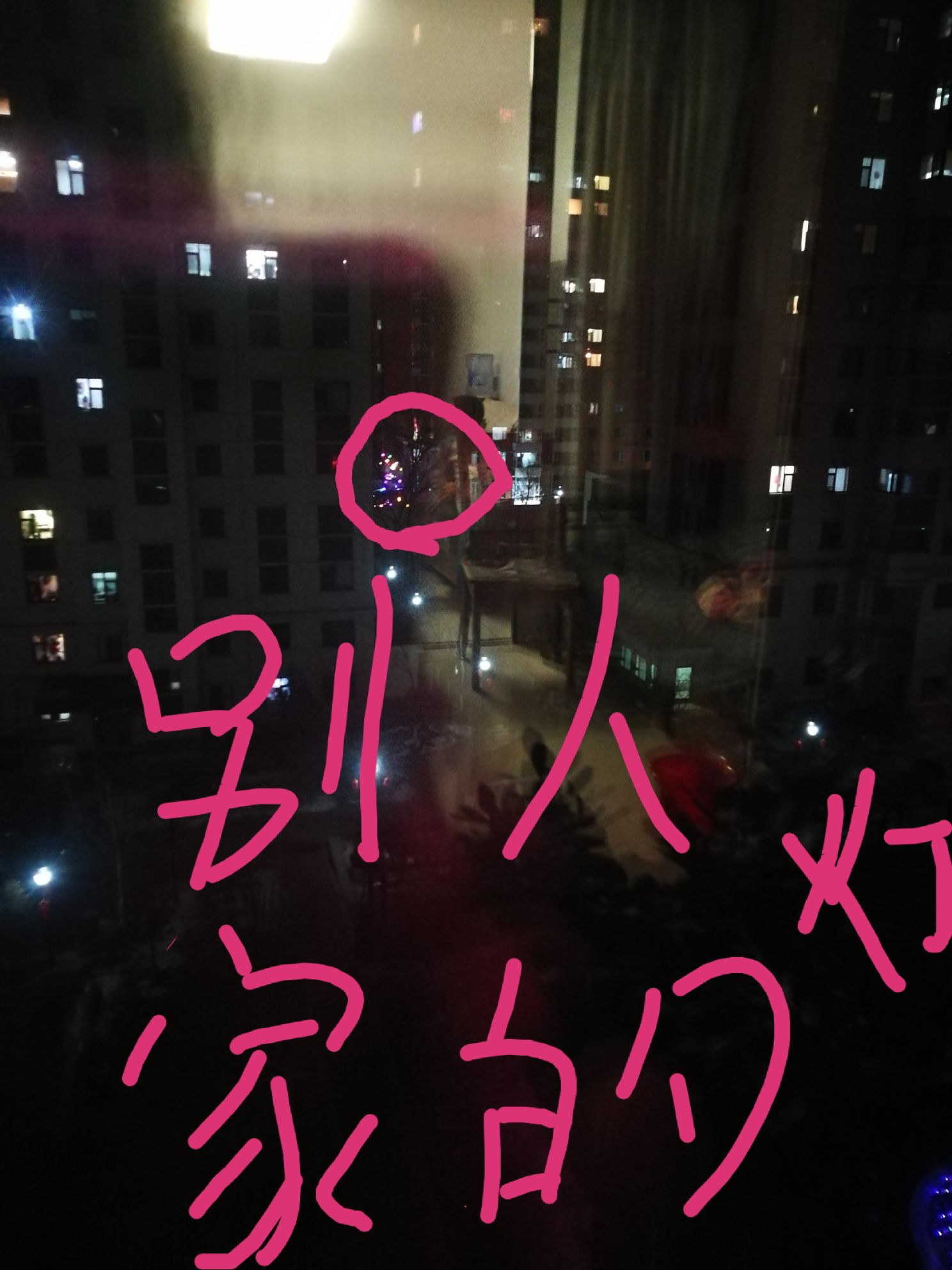大家看我家的灯和别人家的灯,别人家的灯就那么多,都快布满整个小区了,我家的灯两个丢了两个,加上路灯三