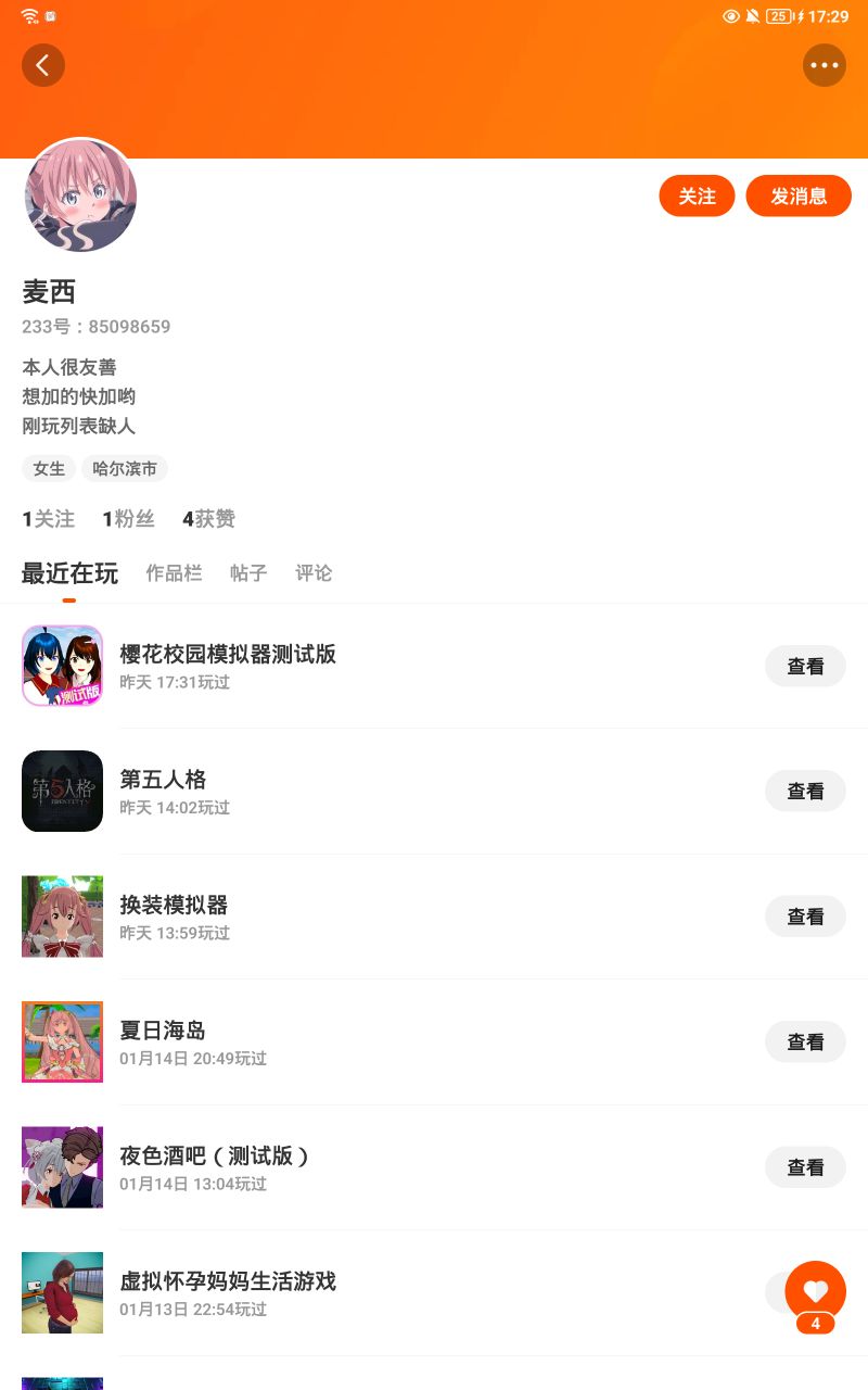 这个人很友善,加他好友。 尽量是男性。
