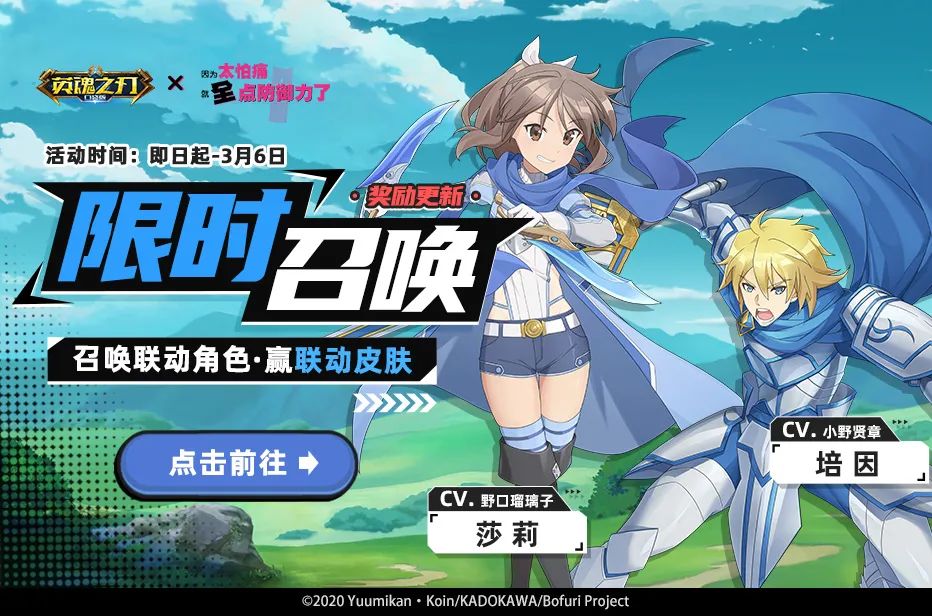 1月20日-3月6日,限时召唤奖池更新啦!通过完成每日登录获得每日登录礼包,打开可获得兑换币!累计兑换币可兑换到限全新联动皮肤宫本武藏莎莉、全新联动皮肤佐罗-培因、超械少女-梅普露、超械少女-梅普露(大天使)、神秘冒险家-刹那芳华等奖励~