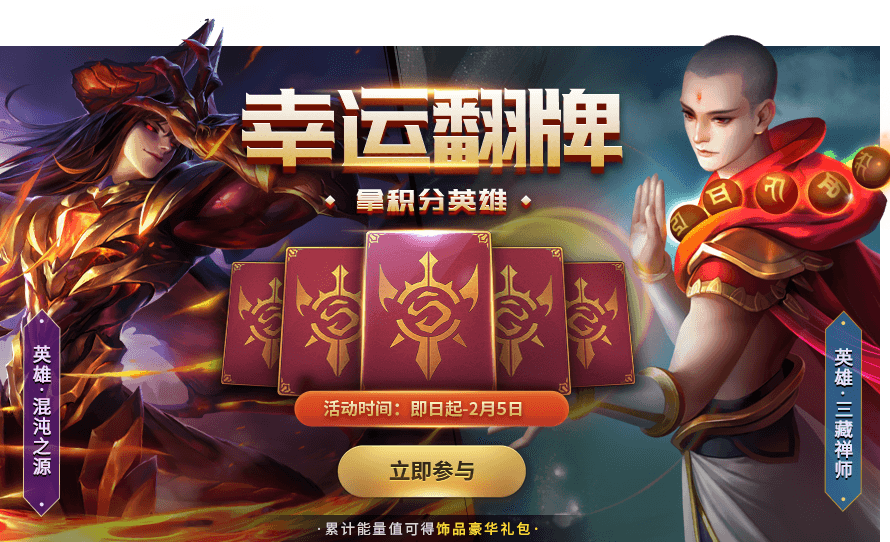 参与就有机会获得全新积分英雄混沌之源、三藏禅师等奖励~