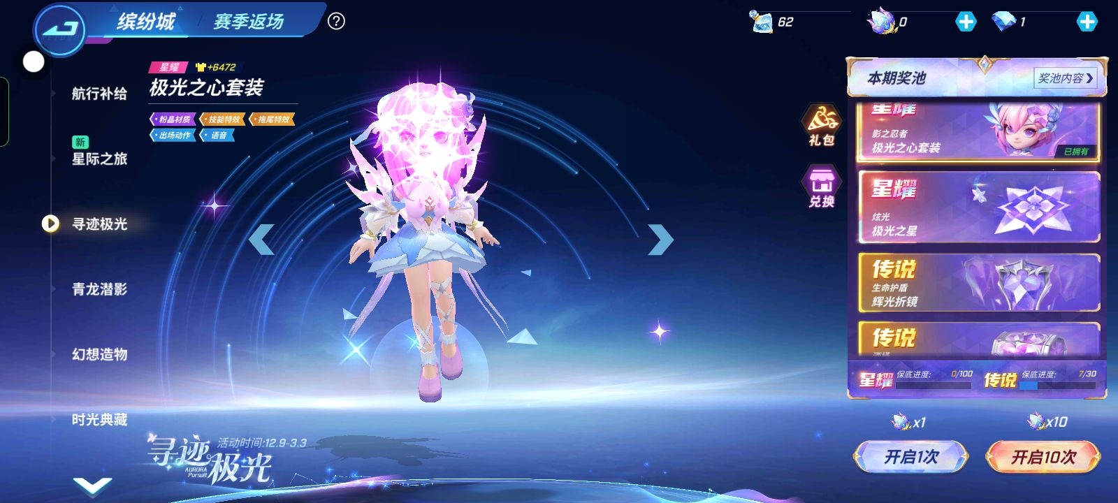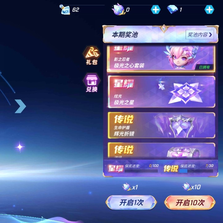 星耀时装三十七次中了,星际之旅抽五次中传说能量剑不亏是我