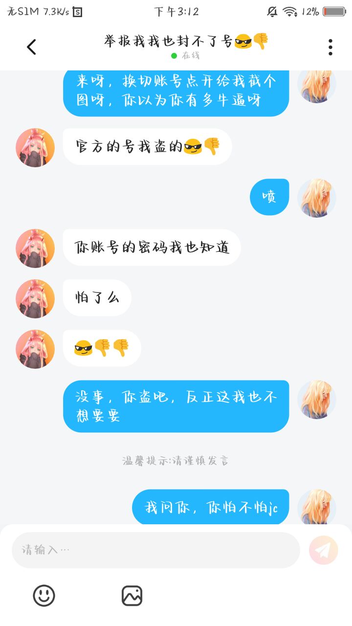因昨天他盗号的事儿,我给他举报了。