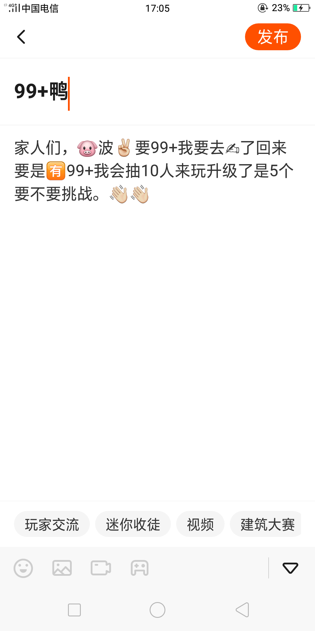 家人们,🐷波✌要99+我要去✍了回来要是🈶99+我会抽10人来玩升级了是5个要不要挑战。👋👋