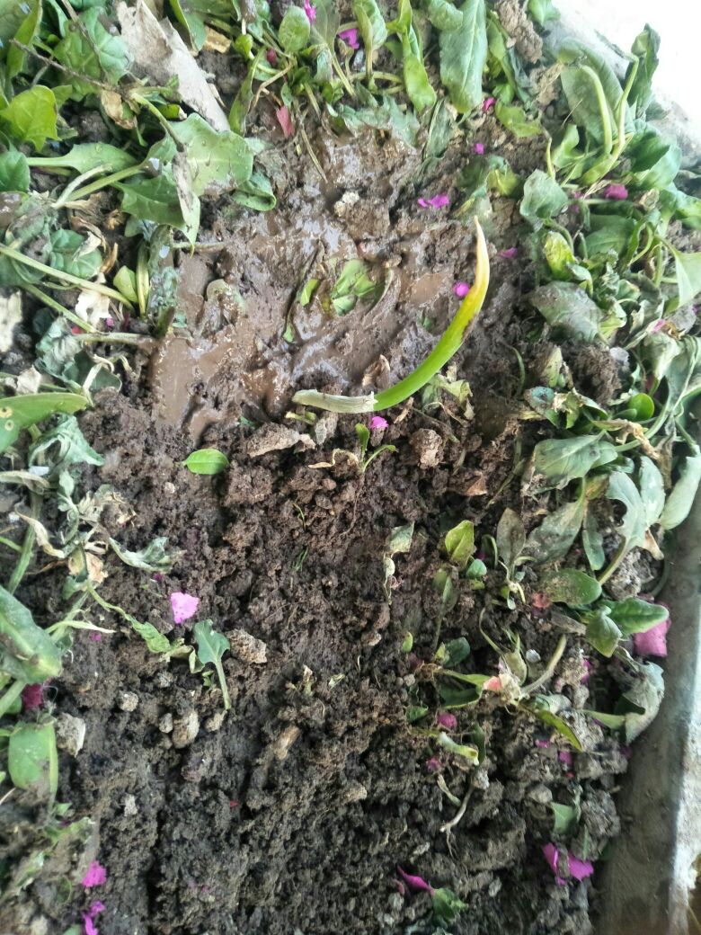 不知道哪个z小孩从我家的土里种了一个葱