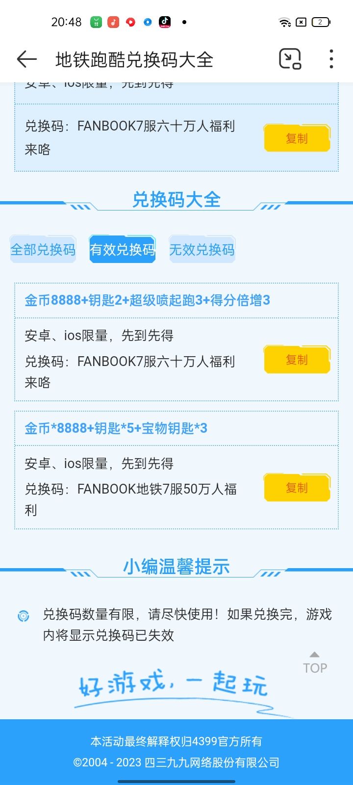 今天的兑换码是↓名额有限