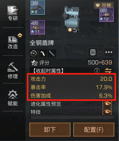 则带3个提升伤害的芯片