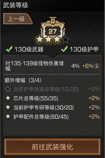 或当前等级阶段武器护甲