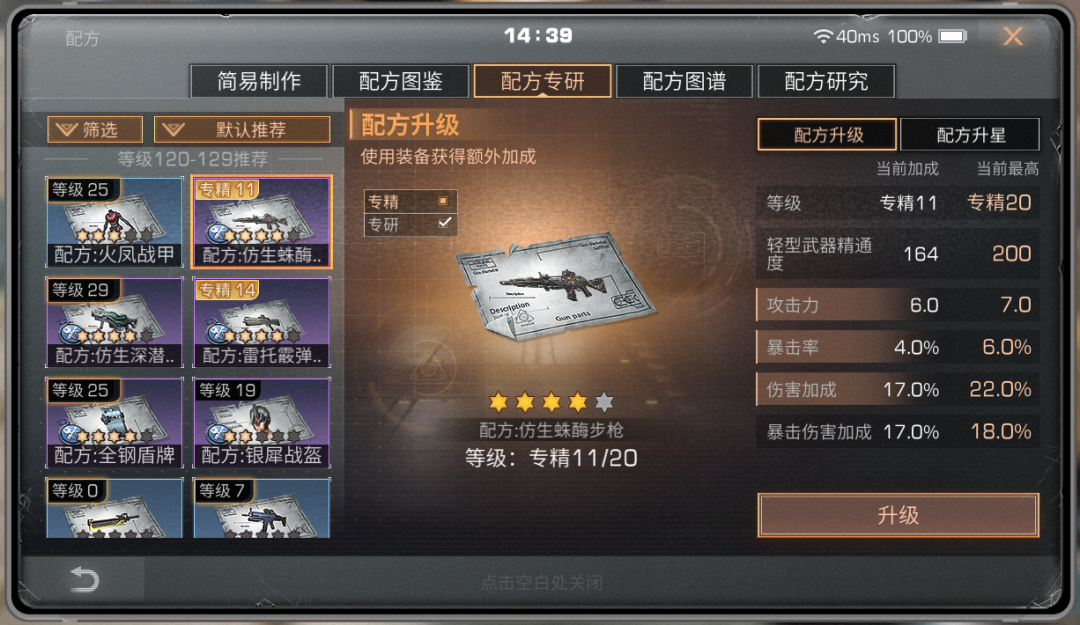 或升级、专研、专精配方