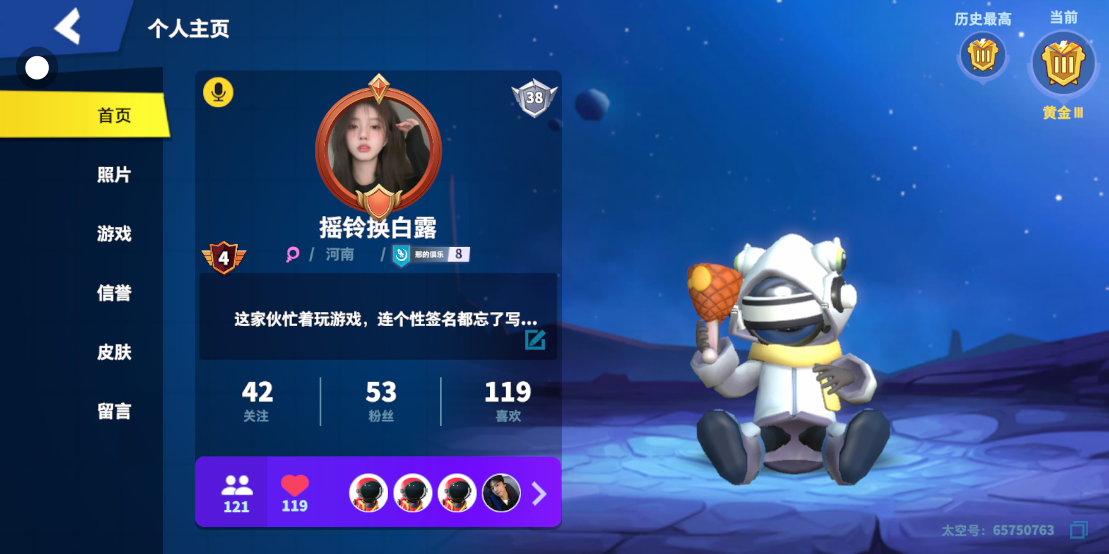 这是我主页,有兴趣的可以和我一起玩,也算半个老手,但是吧技术没那么好。