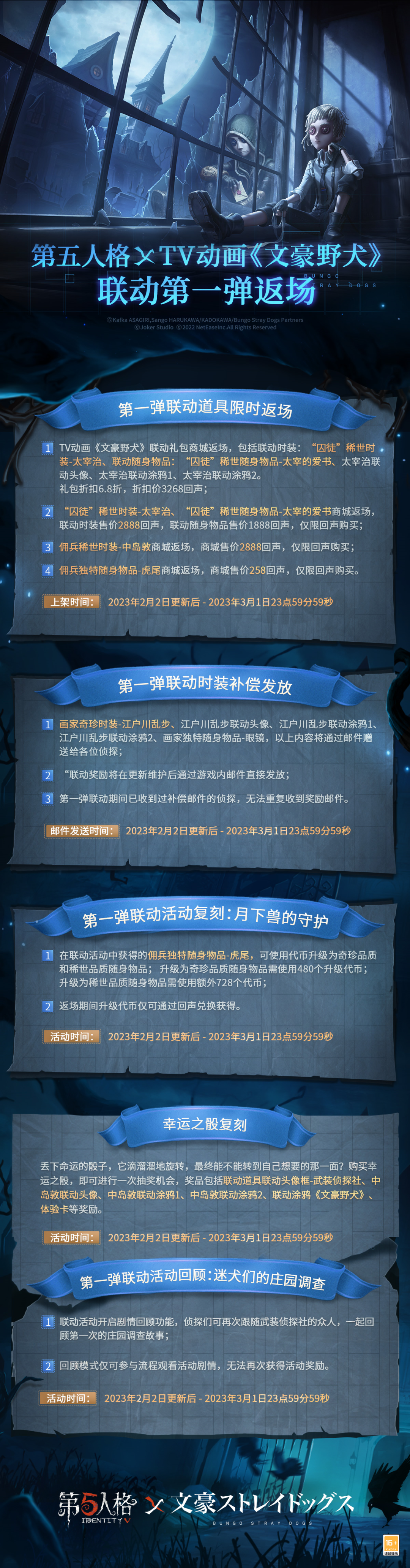 第五人格×TV动画《文豪野犬》联动第一弹返场